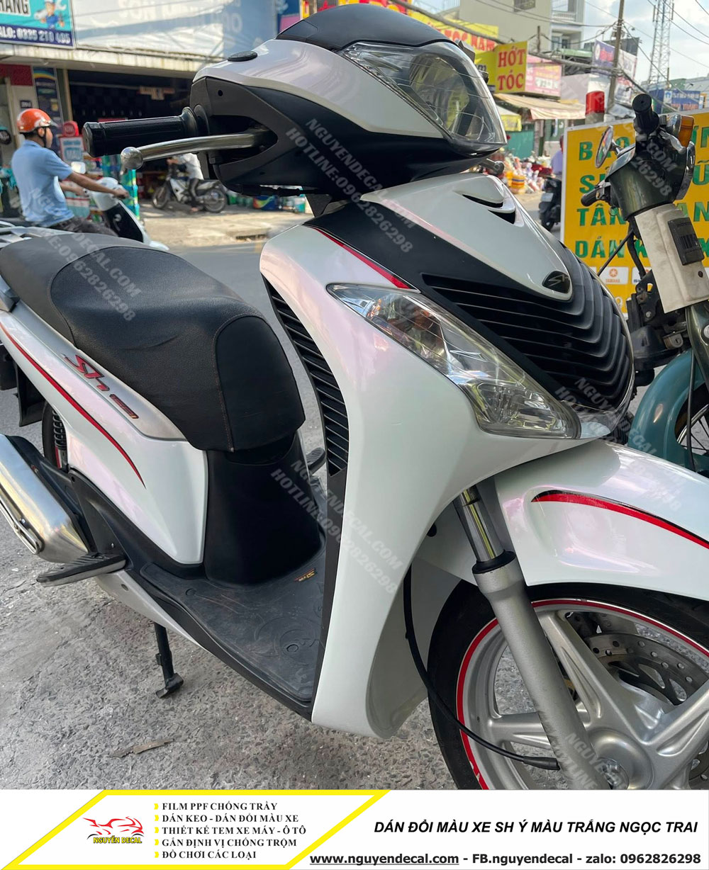 Bạn muốn làm mới chiếc SH Ý nhưng vẫn giữ được độ sang trọng vốn có? Giải pháp chính là dán decal đổi màu với tone trắng ngọc trai tinh tế.