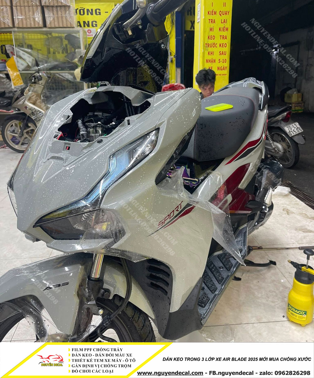 Tại Nguyễn Decal, dịch vụ dán keo 3 lớp Air Blade 2025 được thực hiện bởi kỹ thuật viên tay nghề cao, thao tác tỉ mỉ từng chi tiết. Cam kết không bong, không đục keo, không để lại vết dao – mang đến cho bạn trải nghiệm hoàn hảo cả về chất lượng lẫn thẩm mỹ.