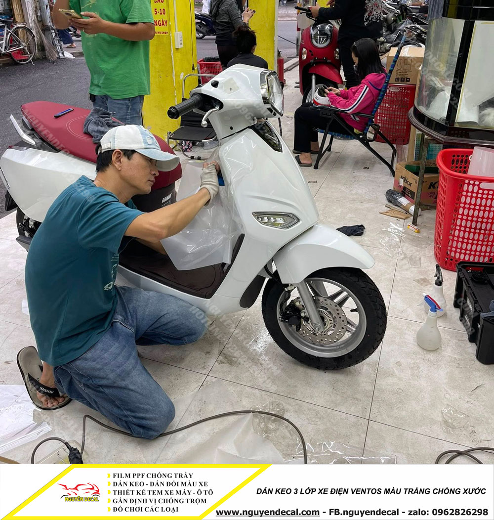 Nếu bạn đang tìm nơi dán keo xe điện uy tín tại TpHCM, hãy đến Nguyễn Decal. Với kỹ thuật thi công chuyên nghiệp, sử dụng decal 3 lớp cao cấp, cửa hàng cam kết mang lại lớp bảo vệ hoàn hảo cho chiếc Ventos màu trắng của bạn.