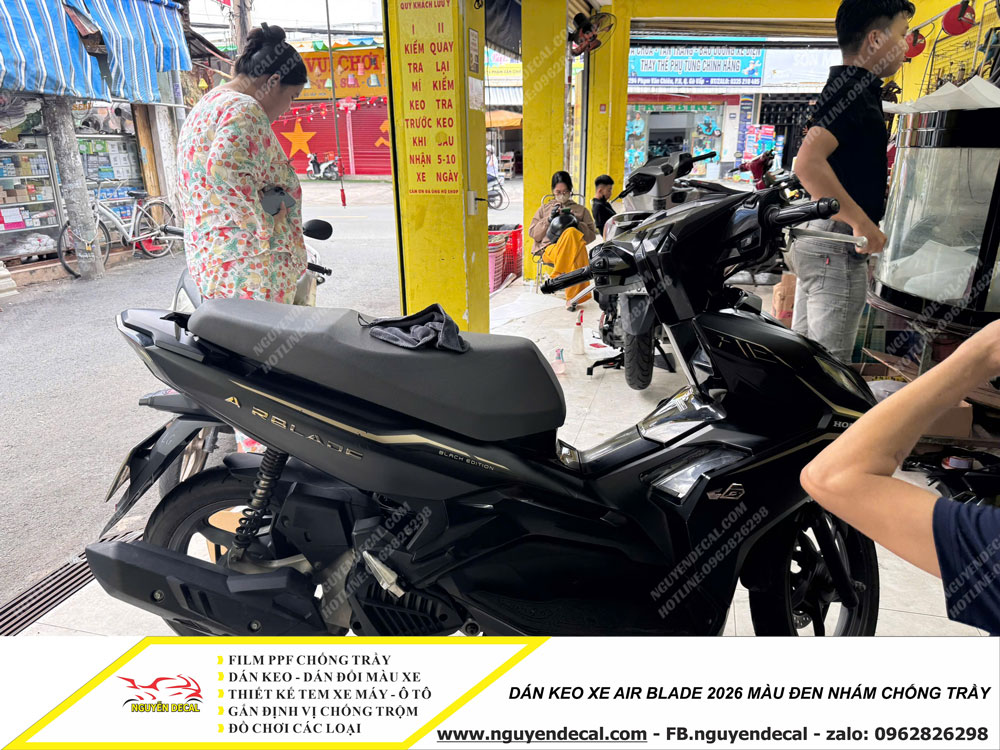 Tại Nguyễn Decal, đội ngũ kỹ thuật viên giàu kinh nghiệm cùng vật liệu chất lượng cao sẽ mang đến cho bạn dịch vụ dán keo Air Blade 2026 màu đen nhám chuẩn thẩm mỹ và bảo vệ tối ưu.