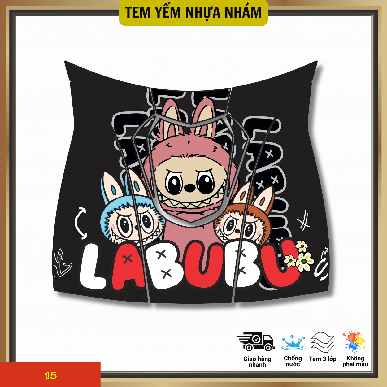 Tem được in trên decal cao cấp 3 lớp, dày dặn, bền màu, chống trầy xước và chịu nhiệt tốt. Thiết kế ôm khít phần yếm nhựa nhám, dễ dán – dễ tháo mà không làm ảnh hưởng đến bề mặt xe.
